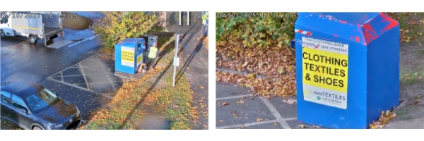 2020Textiles has been caught on camera placing a clothing bin at Everett’s Corner in Cippenham; but without permission from the council.